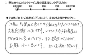 これからもお客様にご満足いただけるよう、細かなところまで誠意をもって対応させていただきます。